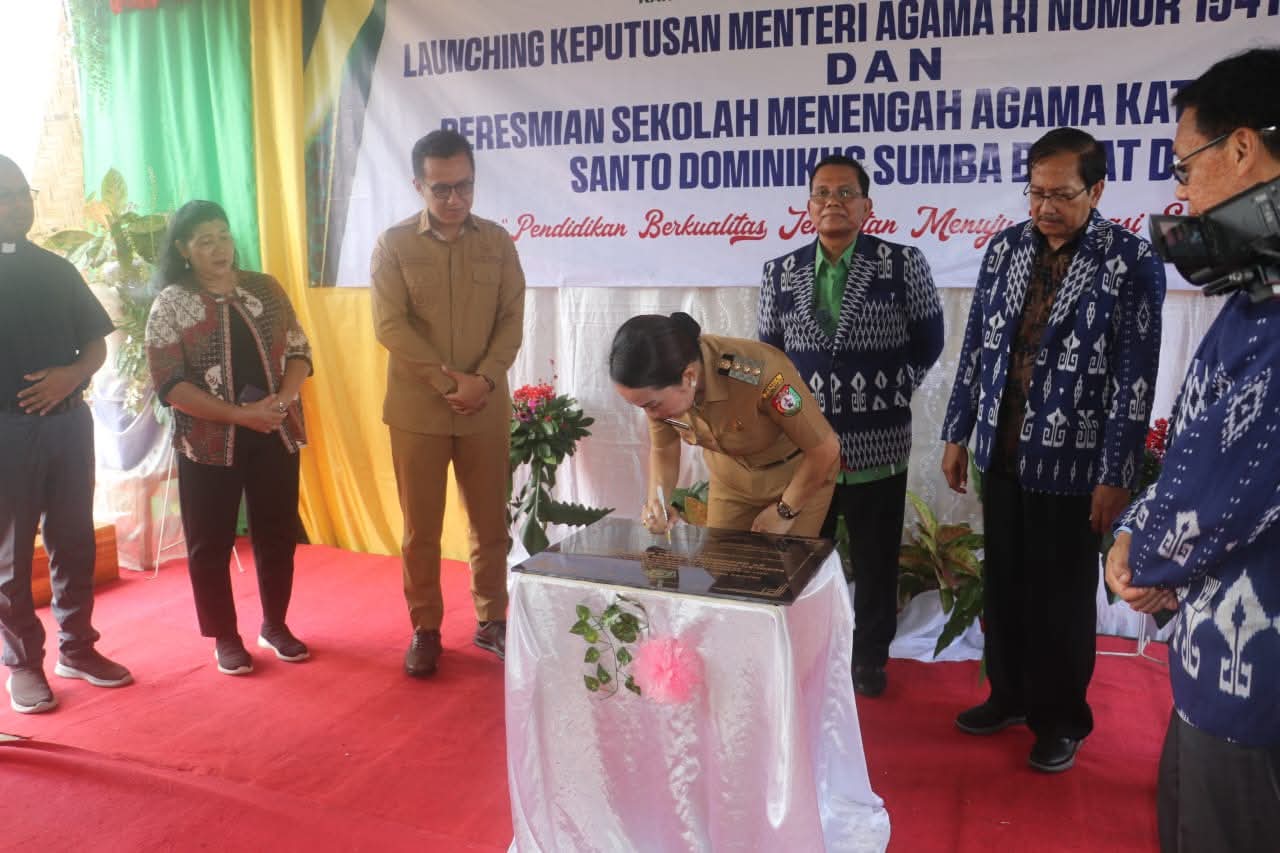 Tambolaka, Kominfo SBD – Bupati Sumba Barat Daya, Ratu Ngadu Bonu Wulla, S.T. bersama Wakil Bupati Dominikus A.R Kaka, menghadiri kegiatan peluncuran Keputusan Menteri Agama (KMA) RI Nomor 1541 Tahun 2025 dan peresmian Sekolah Menengah Agama Katolik (SMAK) Negeri Santo Dominikus Sumba Barat Daya.