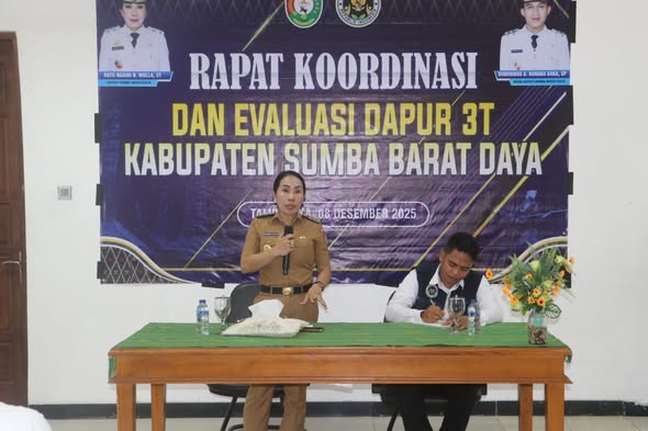 Tambolaka, Kominfo SBD – Bupati Sumba Barat Daya, Ratu Ngadu B. Wulla, S.T., memimpin Rapat Koordinasi (Rakor) dan Evaluasi terkait pelaksanaan program Dapur 3T di Kabupaten Sumba Barat Daya. Program “Dapur 3T” atau yang juga dikenal sebagai Dapur MBG (Makan Bergizi Gratis) di wilayah Terpencil, Terluar, dan Terdalam, merupakan inisiatif pemerintah untuk mengatasi persoalan gizi dan stunting di daerah.